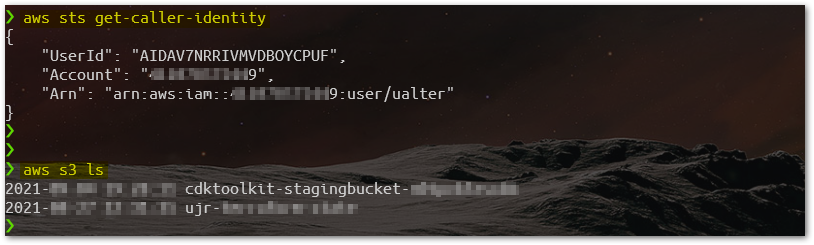 To make things simple, the code is going to use your current AWS connection environment, so make sure that you have the proper AWS Credentials setup, and also that you are pointing to the desired Account. Check that using AWSCLI calling the function get-caller-identity, and/or listing the S3 Buckets, to see if the list is familiar to you.
