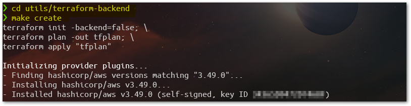 This target will check some dependencies and trigger all the necessary Terraform commands in sequence (check details at utils/terraform-backend/Makefile file). Once we have the Terraform Backend ready, we can proceed and start to deploy our solution.